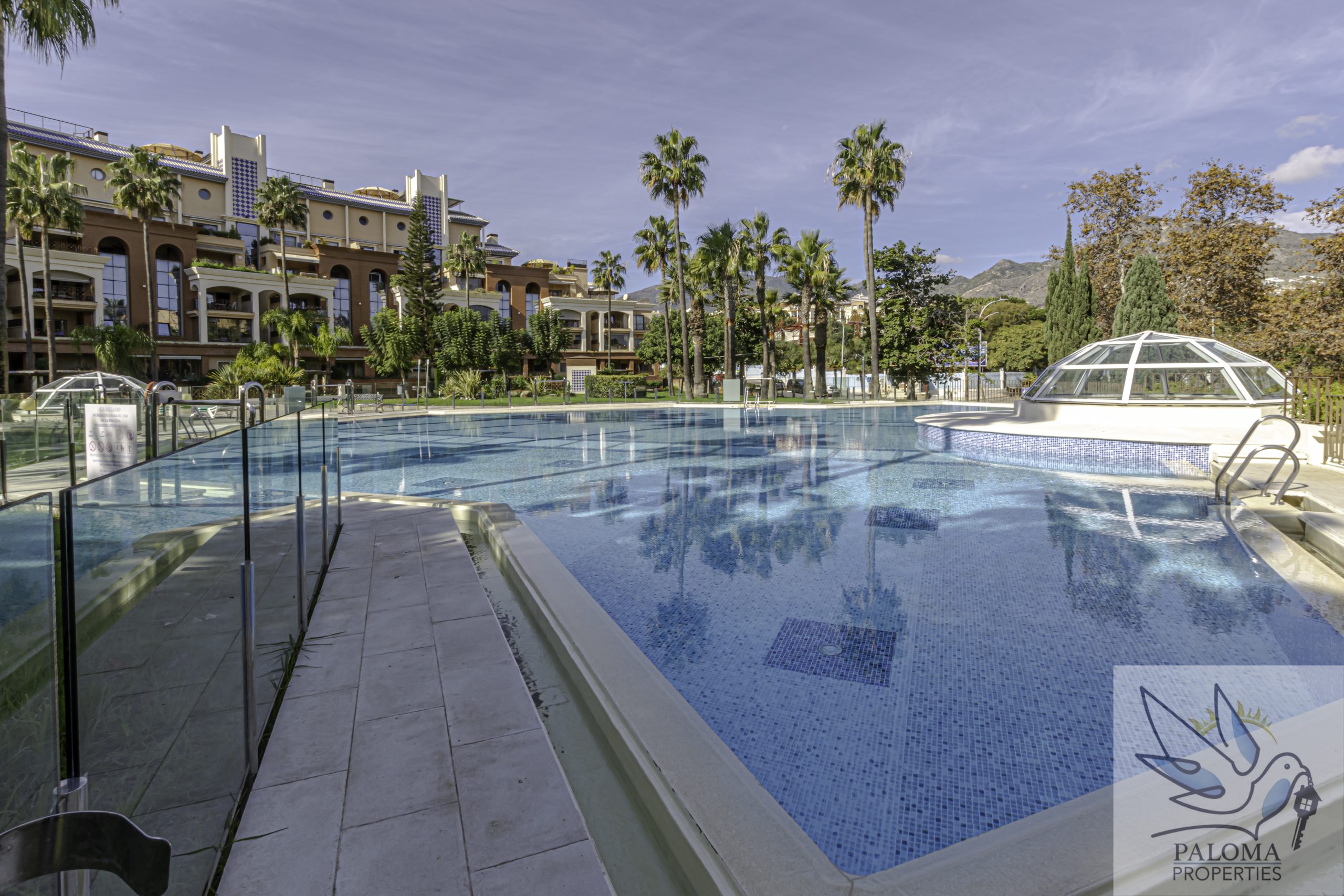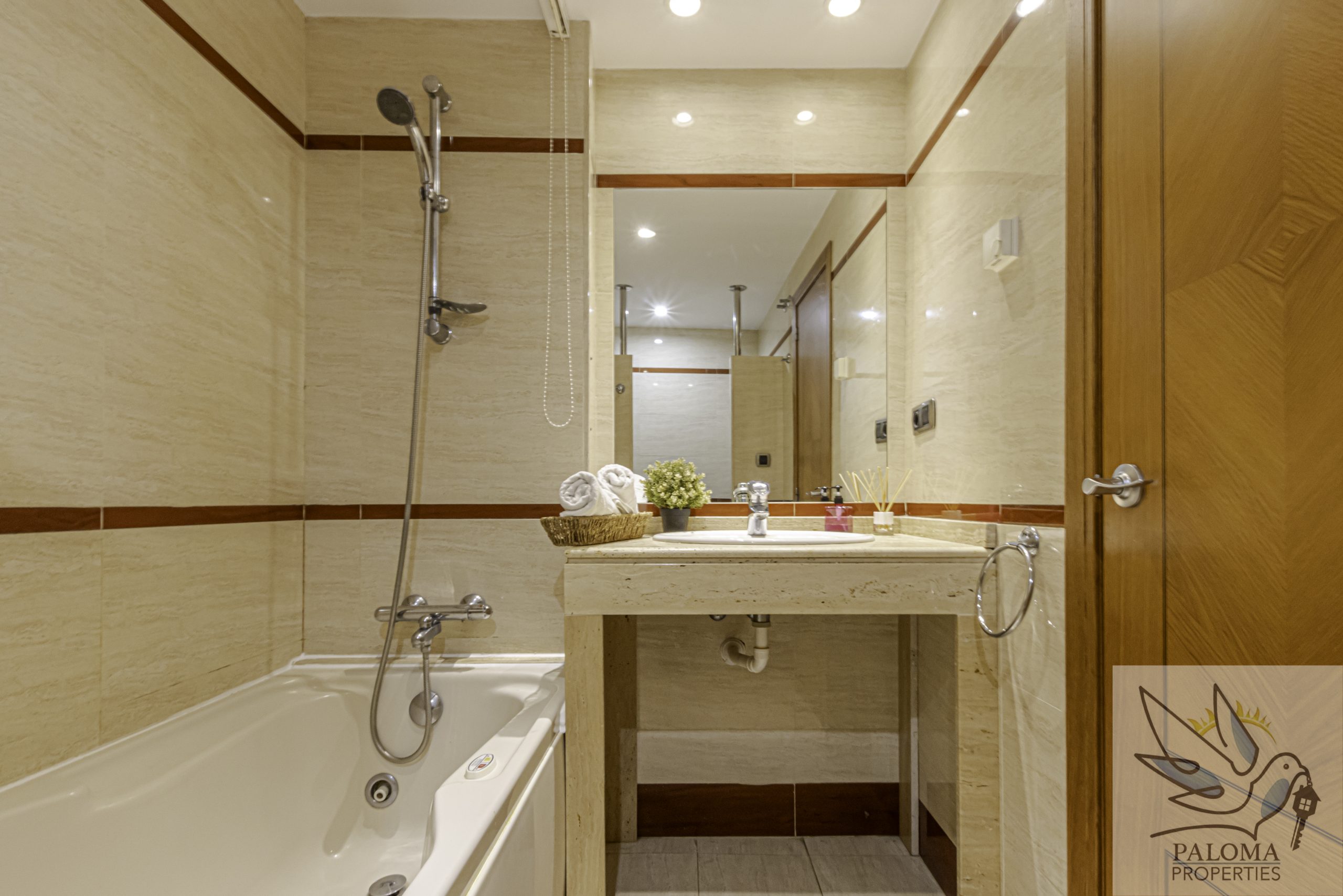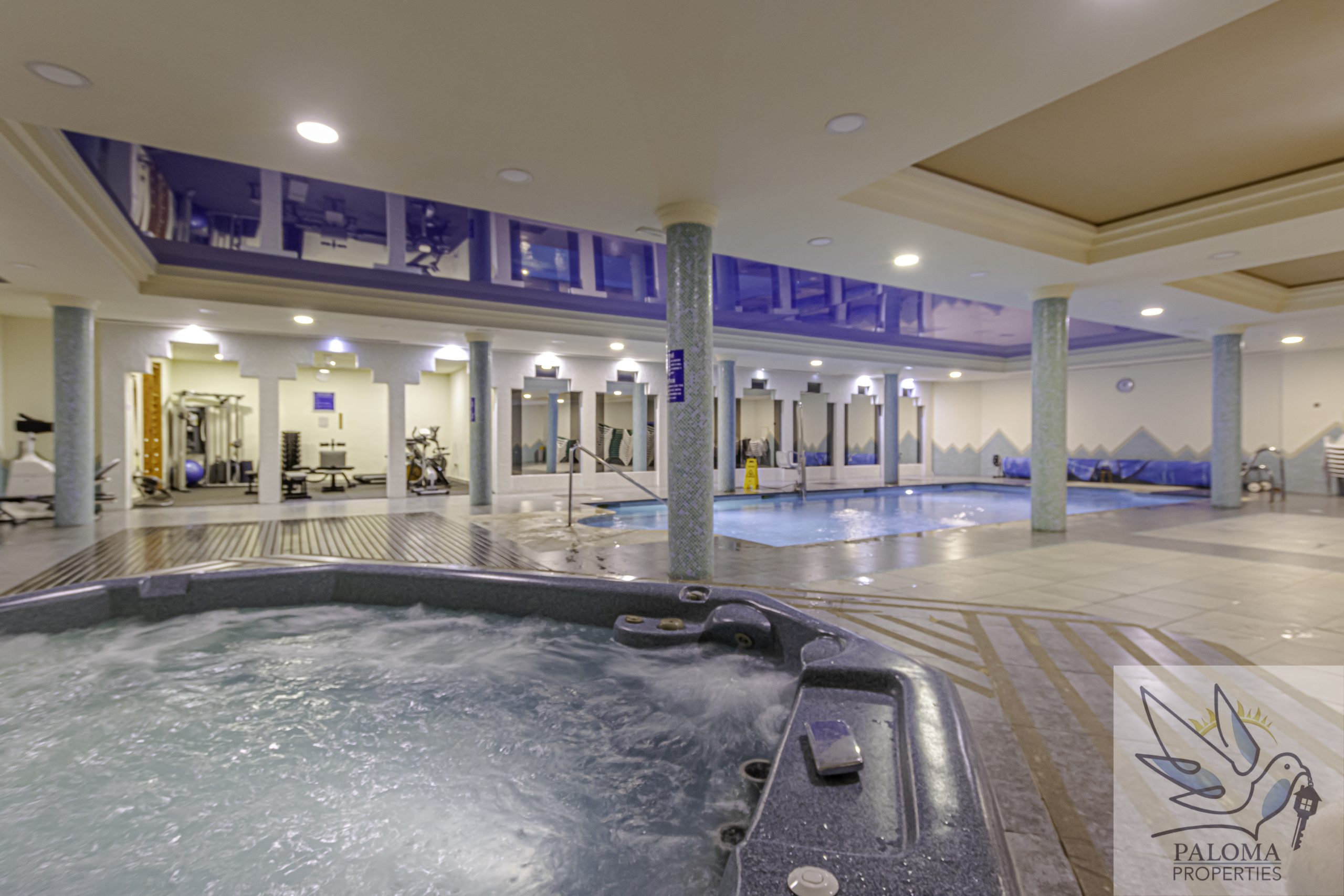 We present this exclusive and spacious 2-bedroom apartment surrounded by beautiful gardens. It is located just 5 minutes from the beach on foot and next to La Paloma Park in Benalmádena. The apartment has a sunny terrace, an outdoor and indoor heated pool, a large jacuzzi, a gym, a sauna, and private parking. It has all the amenities to enjoy a comfortable and pleasant stay.